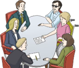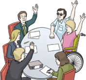 In den Arbeits-Kreisen arbeiten mehrere Menschen zusammen.