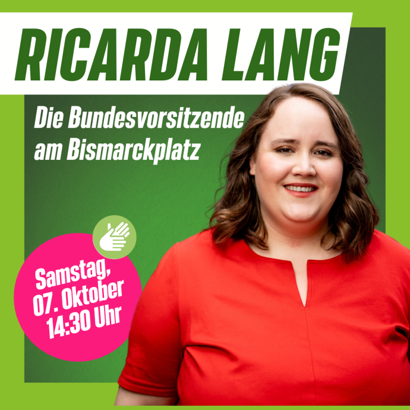 Einen Tag vor der Landtags- und Bezirkstagswahl freuen wir uns, Ricarda Lang am schönen Bismarckplatz begrüßen zu dürfen. Los geht es am Samstag, den 07.Oktober um 14:30 Uhr.