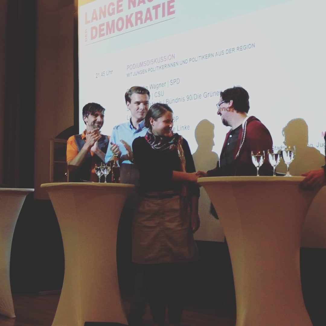 Bei der langen Nacht der Demokratie wurde unser Bezirkstags-Direktkandidat Stefan Christoph gefragt, was Demokratie für ihn bedeutet. „Demokratie besteht für mich nicht nur aus den Institutionen der repräsentativen Demokratie“, so Christoph. „Sie besteht vor allem auch in universellen Werten, in der Abwehr von Faschismus, Rassismus und anderer Menschenverachtung. In der ganzen Gesellschaft – auch in Schulen, Ausbildungsbetrieben und Hochschulen – muss Demokratie gelebt werden.“