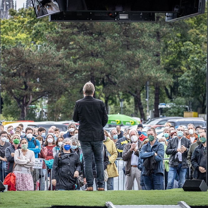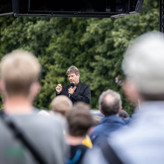 Ein neues Jahrzehnt braucht neue Politik. Im ganzen Land wachsen Menschen gerade über sich hinaus. Einsatzkräfte, die uns bei Überschwemmungen oder Waldbränden mutig schützen. Pfleger*innen, die alles für unsere Gesundheit geben. Unternehmer*innen, die dazu beitragen, klimaneutralen Wohlstand zu schaffen. All diese Menschen sind bereit für eine Politik, die die Herausforderungen unserer Zeit anpackt. Über die Ideen, wie wir durch Veränderung Halt schaffen, möchte Robert Habeck mit Bürger*innen im ganzen Land ins Gespräch kommen.