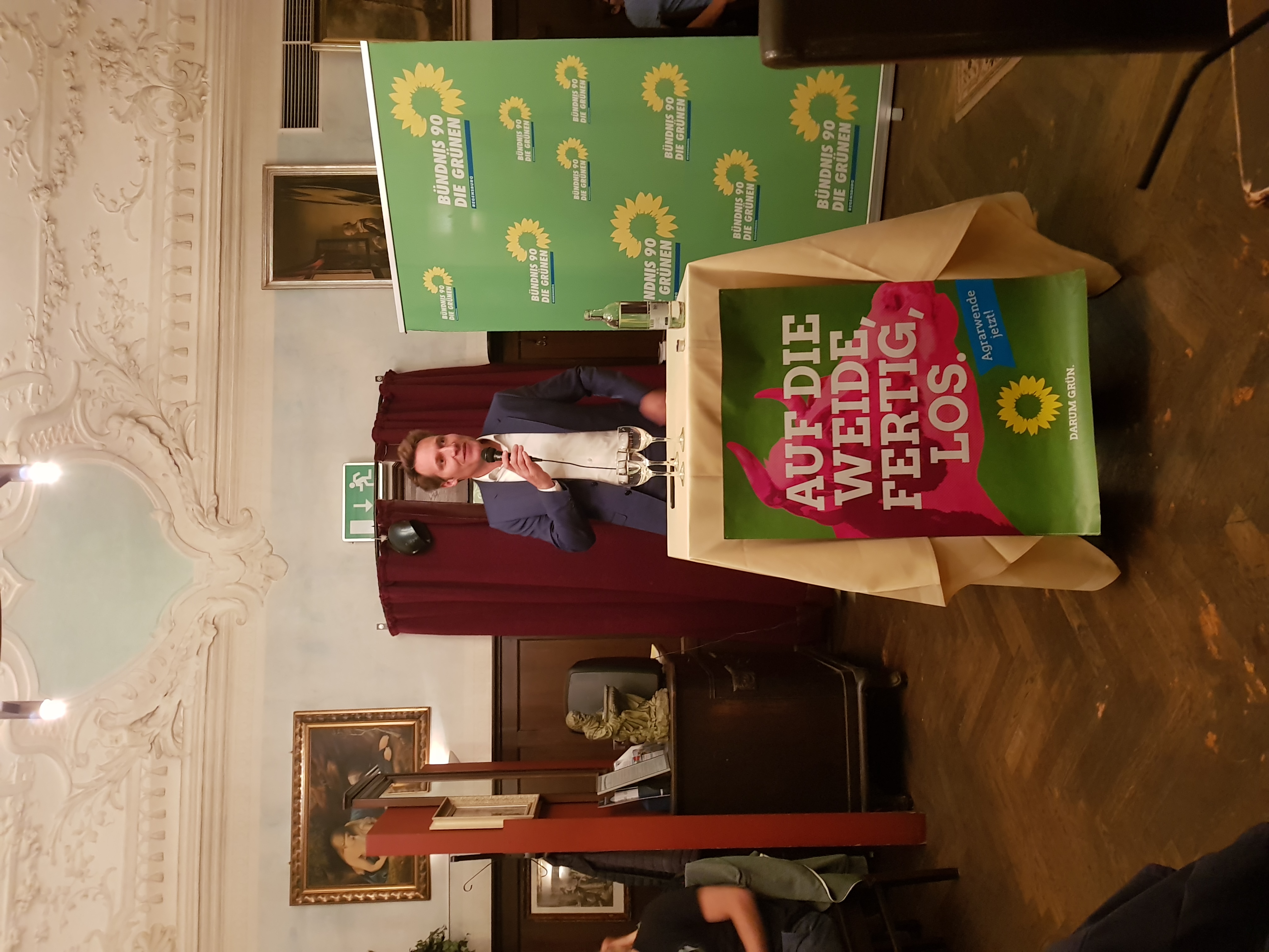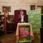 Anschließend eröffnete Maria Simon die Diskussionsrunde. Aus dem Publikum wurden Fragen zur Umsetzung der Energie- und Agrarwende gestellt. Darauf antwortete Ludwig Hartmann: „Ein Energiesystem, das auf endlichen Rohstoffen beruht, hat keine Zukunft!“ Eine Energiewende zu Wind und Sonne liefere dagegen ein System mit verlässlichen Energiepreisen. Die Landwirte müssten am Umwelt- und Tierschutz intensiver beteiligt werden, durch eine Umstellung des Agrarsystems würden sowohl Naturschützer, als auch Verbraucher zufrieden gestellt. Des Weiteren spricht sich Ludwig Hartmann angesichts des Artensterbens für eine giftfreie Landwirtschaft, sowie ein Artenschutzgesetz aus.