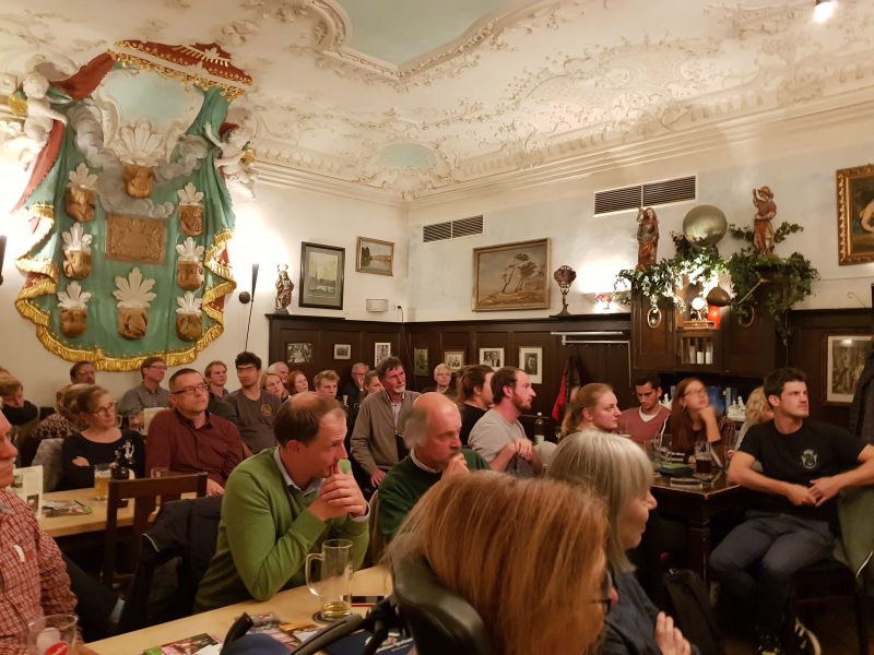 Unser Direktkandidat und MdL Jürgen Mistol eröffnete die Veranstaltung und sprach sich für ein weltoffenes Regensburg und ein Europa ohne Schlagbäume aus. Stadtvorsitzende Maria Simon stellte die Gäste des Abends vor: Grünen Fraktionsvorsitzender und Spitzenkandidat Ludwig Hartmann, REWAG- Vorsitzender Olaf Hermes und Lammsbräu-Geschäftsführerin Susanne Horn sind der Einladung zur Podiumsdiskussion gefolgt. In kurzen Statements stellten sie ihre Standpunkte zum Thema Wirtschaft und Umwelt dar.