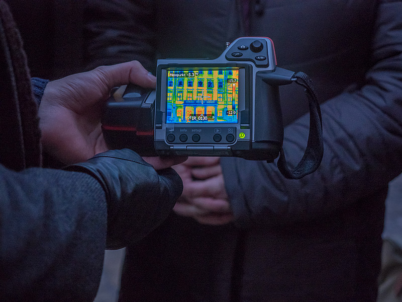 Am 20. Januar 2016 hat der grüne Ortsverband Altstadt mehrere öffentliche Gebäude mit einer Wärmebildkamera abgelichtet um sichtbar zu machen, wie gut die Gebäude gedämmt sind.