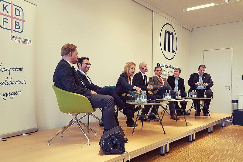 Unser Direktkandidat für den Bundestag, Stefan Schmidt, war am Dienstag zusammen mit den Direktkandidat*innen der anderen Parteien bei der Podiumsdiskussion des Katholischen Frauenbundes. In den Räumen der Mittelbayerischen stellte Redakteur Christian Kuczniers Fragen an die Kandidat*innen. Wir danken dem Katholischen Frauenbund für die Einladung zu dieser spannenden Podiumsdiskussion mit Einlagen des Kabaretttrios „Weibsbilder“, zu dem über 100 Regensburgerinnen und Regensburger gekommen waren.
