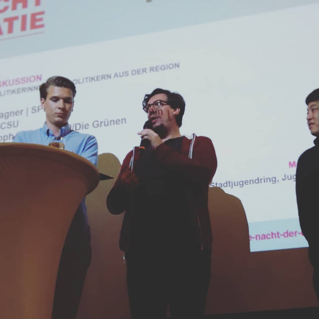 Bei der langen Nacht der Demokratie wurde unser Bezirkstags-Direktkandidat Stefan Christoph gefragt, was Demokratie für ihn bedeutet. „Demokratie besteht für mich nicht nur aus den Institutionen der repräsentativen Demokratie“, so Christoph. „Sie besteht vor allem auch in universellen Werten, in der Abwehr von Faschismus, Rassismus und anderer Menschenverachtung. In der ganzen Gesellschaft – auch in Schulen, Ausbildungsbetrieben und Hochschulen – muss Demokratie gelebt werden.“