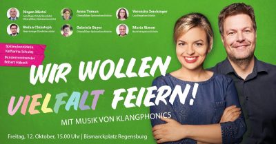 Wir wollen Vielfalt feiern! – das große Wahlkampfabschlussfest mit Katharina Schulze und Robert Habeck Das Beste kommt wie immer zum Schluss! Diesen Wahlkampf beenden wir mit einen großen bunten Fest und feiern die Vielfalt. Mit unserer bayerischen Spitzenkandidatin, Katharina Schulze, dem Parteivorsitenden der Grünen, […]