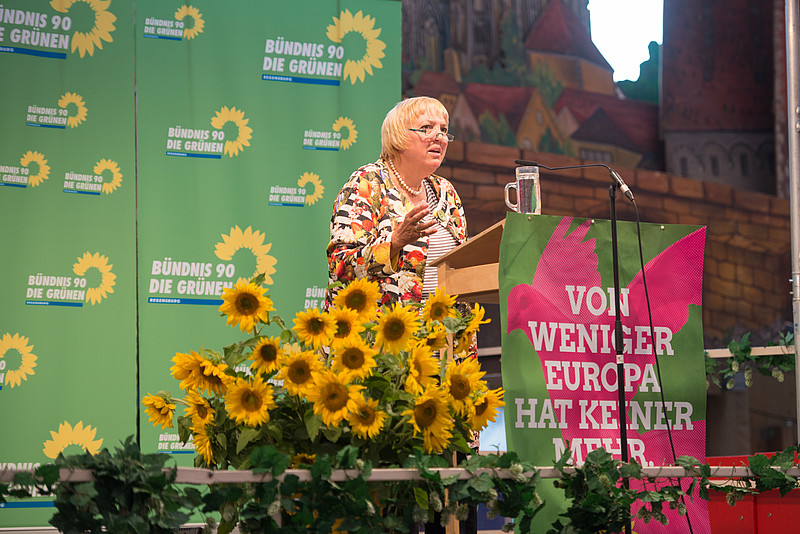 Claudia Roth knüpfte an die Kritik des Regensburger Direktkandidaten an. Ein Politikwechsel muss kommen, der ohne die grünen Ideen nicht zu schaffen ist. Ganz deutlich kritisierte sie dabei die Aufmachung des Bundestagswahlkampfes: „Es geht bei den Wahlen am 24. September nicht um die Präsidentschaftswahl zwischen Angela Merkel und Martin Schulz. Wir wählen einen neuen Bundestag. Und dort werden die relevanten Entscheidungen gefällt.“ Dabei betonte Claudia Roth auch, dass die Bundestagswahl über die Ausrichtung des Landes entscheidet. Die Grünen stehen im Gegensatz zu den rechtspopulistischen Parteien für Menschenrechte, einen echten Klimaschutz und eine offene Gesellschaft! Bekannt für ihre euphorischen Reden, ließ Claudia Roth kein aktuelles Thema auf sich sitzen. Besonders ging sie auf die die zunehmende Schere zwischen Arm und Reich in Deutschland ein. „Die Zahl der Working Poor und der sogenannten Aufstocker wächst seit Jahren. Drei Millionen Kinder leben in Armut. So kann es nicht weitergehen“, kritisierte Claudia Roth. Die sozialen Ungleichheiten müssen beendet werden. Lautstark betonte sie, dass endlich faire Arbeitsverhältnisse geschaffen werden müssen und eine Kindergrundsicherung viele Kinder in Deutschland aus der Armut verhelfen kann.